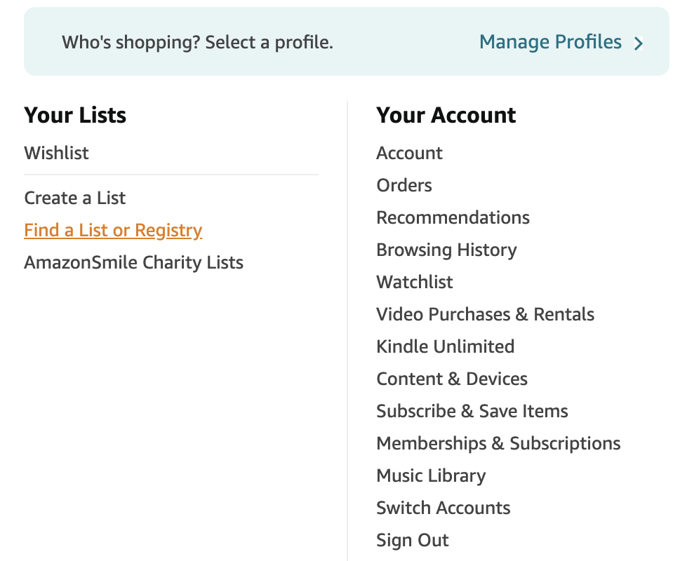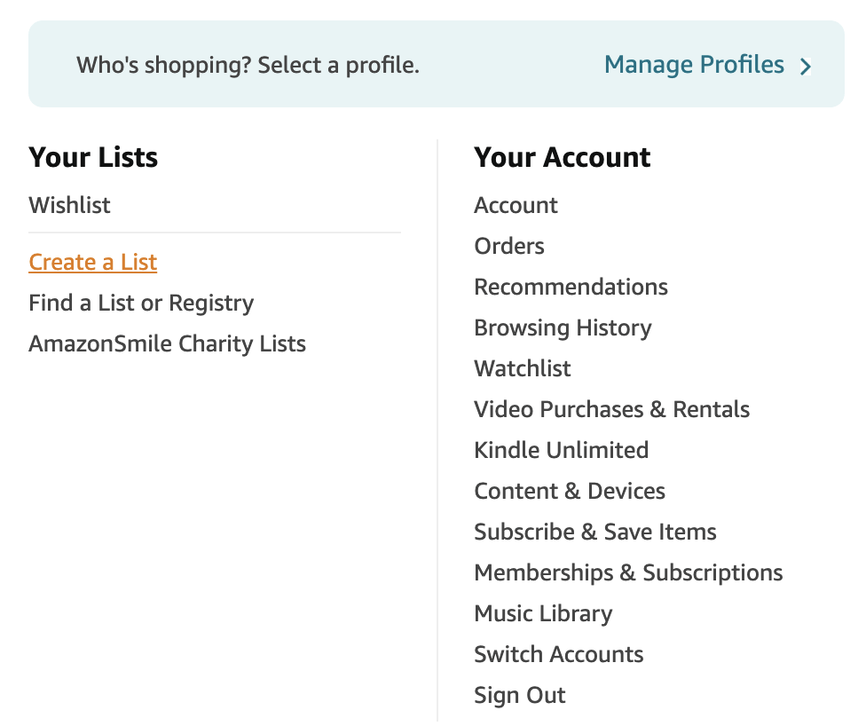 - Μεταβείτε στον λογαριασμό σας στο Amazon και ανοίξτεΟι λίστες σας.