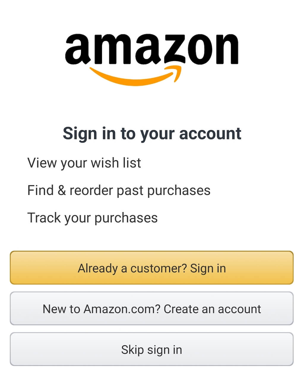 - Ανοίξτε την εφαρμογή ψώνια Amazon στο smartphone σας και συνδεθείτε στον λογαριασμό σας.