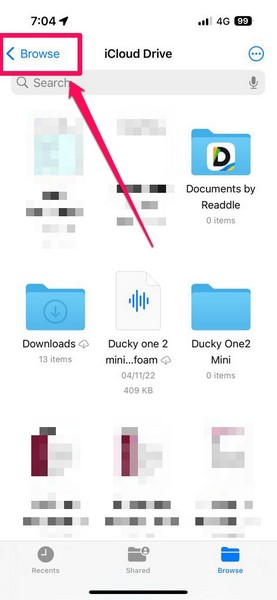 3.Εάν ο φάκελος Drive Icloud ανοίξει στην καρτέλα Περιήγηση, πατήστε τοΑναζήτηση επιλογήςστο επάνω αριστερό μέρος.