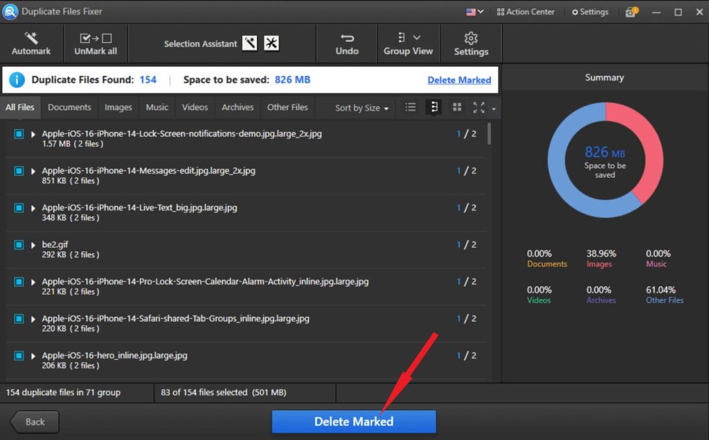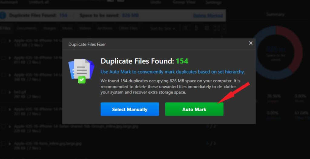 Βήμα 4:Μόλις ολοκληρωθεί με επιτυχία η σάρωση, θα σας παρουσιαστεί η επιλογή να καταργήσετε τα διπλότυπα είτε χειροκίνητα είτε χρησιμοποιώντας το βολικό χαρακτηριστικό 'auto mark'. Για να εξορθολογίσετε τη διαδικασία με καθαρισμό ενός κλικ, απλά κάντε κλικ στο κουμπί«Αυτόματο σήμα».