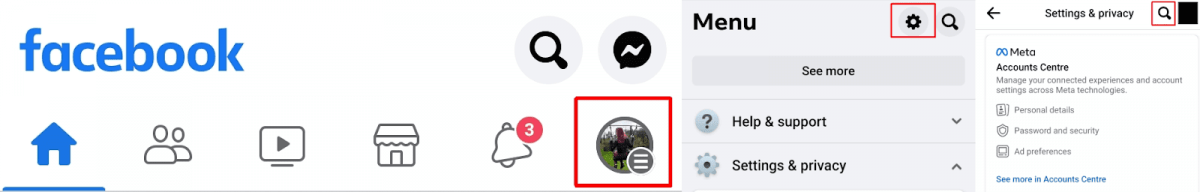 - Στην επάνω δεξιά γωνία της οθόνης σας, κάτω από το εικονίδιο Messenger, κάντε κλικ στο εικονίδιο που εμφανίζει το δικό σαςpic προφίλ με τρεις οριζόντιες γραμμές.