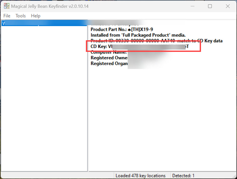Εάν δεν θέλετε να χρησιμοποιήσετε καμία από τις παραπάνω μεθόδους, μπορείτε επίσης να χρησιμοποιήσετε ένα πρόγραμμα τρίτου μέρους για να ελέγξετε το προϊόν των Windows 11. Υπάρχουν πολλά διαθέσιμα προγράμματα που μπορούν να σας βοηθήσουν με αυτό, όπωςΜαγικό Jelly Bean Keyfinder. Απλά κατεβάστε και εξαγάγετε το αρχείο zip και εκτελέστε το αρχείο Keyfinder για να αποκτήσετε πρόσβαση στο πλήκτρο προϊόντος των Windows 11.