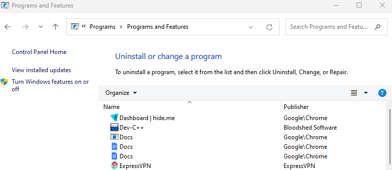 Βήμα 2:Κάντε κλικ στην κατηγορία προγραμμάτων και επιλέξτε απεγκαταστήστε μια εφαρμογή.