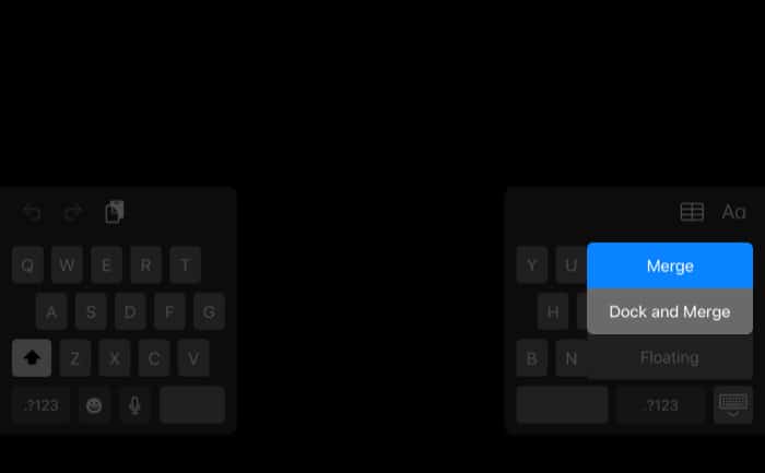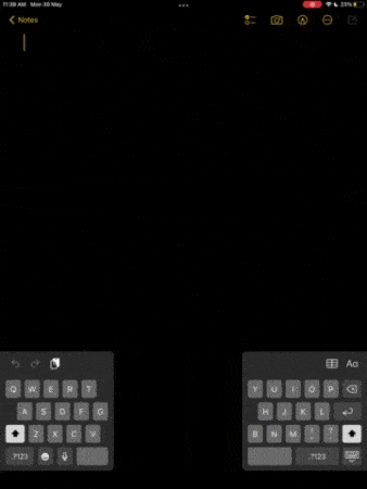 Στο διαχωριστικό πληκτρολόγιο, όπως είχατε δει προηγουμένως, το πληκτρολόγιο χωρίζει σε δύο μισά και πηγαίνει στις δύο πλευρές της οθόνης. Είναι ένα καλό χαρακτηριστικό για όσους έχουν μικρά χέρια και που δεν είναι σε θέση να μετακινήσουν τα δάχτυλά τους σε όλες τις πλευρές του πληκτρολογίου. Μπορείτε επίσης να χρησιμοποιήσετε αυτήν τη λειτουργία για να πληκτρολογήσετε ενώ κρατάτε το iPad σας και στα δύο χέρια.