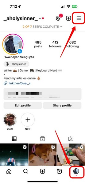 2. Πατήστε το εικονίδιο του προφίλ σαςστο κάτω μέρος Nav Bar και πατήστε τοΡυθμίσεις και κουμπί δραστηριότητας (τριών ράβδων)Στο επάνω δεξιά.