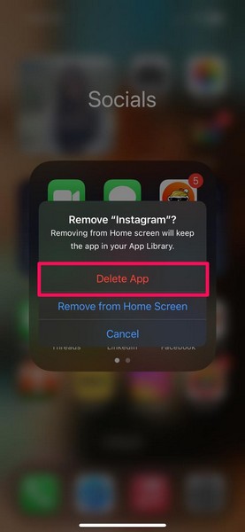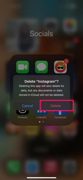 4. Επιβεβαιώστε τη δράση σαςΣτην επόμενη προτροπή για την απεγκατάσταση της εφαρμογής Instagram.