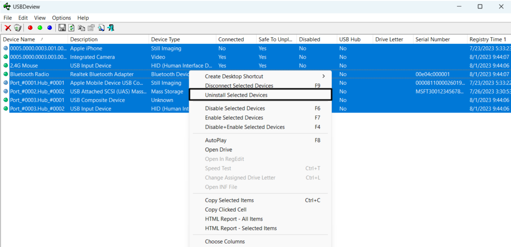 8.Εν τέλει, επιλέγωΑπεγκαταστήστε τις επιλεγμένες συσκευέςαπό το μενού συμφραζομένων για να αφαιρέσετε όλα αυτά.