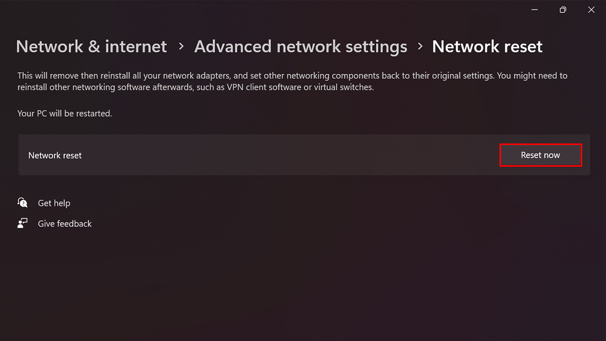 Πριν ξεκινήσουμε: Όταν χρησιμοποιείτε την επιλογή επαναφοράς για έναν προσαρμογέα Ethernet, τα Windows 11 θα επαναφέρουν τις ρυθμίσεις στην προεπιλεγμένη διαμόρφωση του εργοστασίου, συμπεριλαμβανομένων των Windows Hucket, που σημαίνει ότι δεν χρειάζεται να εκτελέσετε τοΕπαναφορά Netsh WinsockΗ εντολή και ο οδηγός προσαρμογέα δικτύου θα επανεγκατασταθούν.