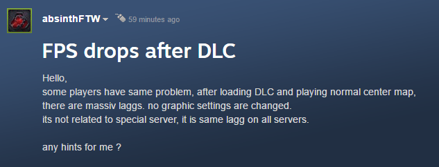 Ένας παίκτης ανέφερε τα ακόλουθα στοΠίνακας ελέγχου ατμούΣχετικά με τα θέματα του παιχνιδιού: