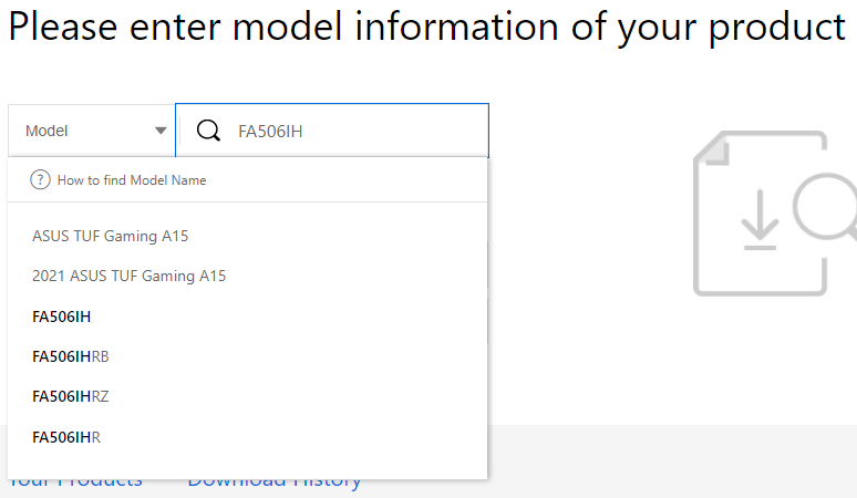 3.Πληκτρολογήστε τον αριθμό μοντέλου του φορητού υπολογιστή σας και επιλέξτε τον από το αναπτυσσόμενο μενού.