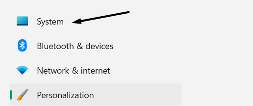 1.Πατήστε Windows + I για να ανοίξετε τοΕφαρμογή ρυθμίσεωνκαι επιλέξτε τοΣύστημακατηγορία από τα αριστερά.