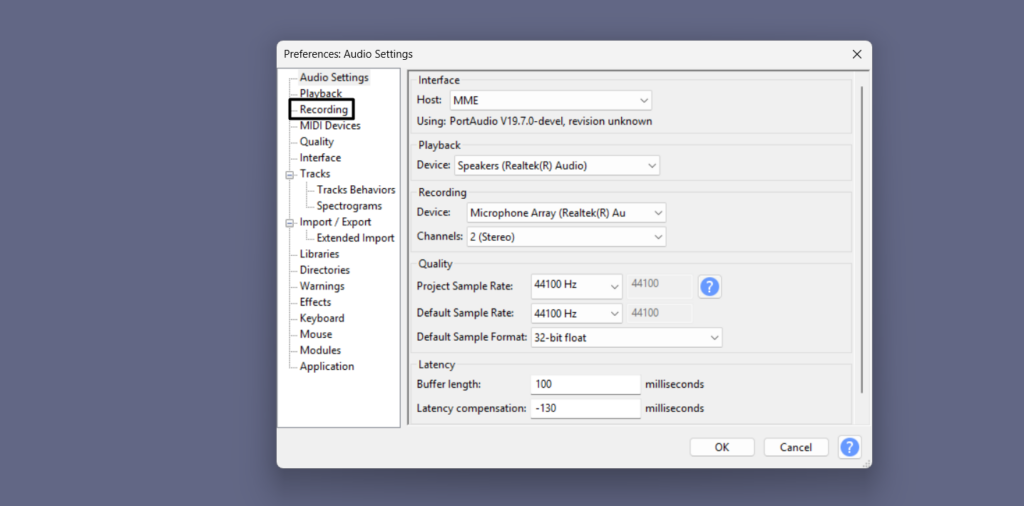 5.Αφού ενεργοποιήσετε τις παραπάνω επιλογές, ανοίξτε ξανά την Audacity για να ελέγξετε εάν η εγγραφή λειτουργεί τώρα.