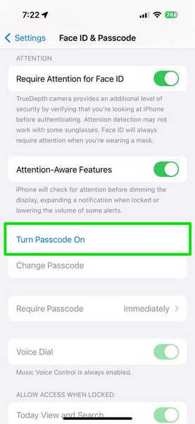 6. Απενεργοποιήστε και ενεργοποιήστε τον κωδικό πρόσβασης στο iPhone σας