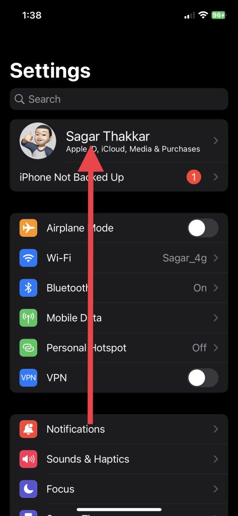 1.Εκκινήστε τοΡυθμίσειςεφαρμογή και πατήστε το όνομά σας.