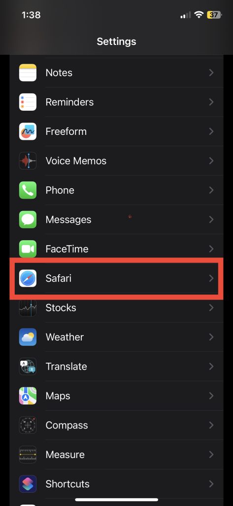 2.Μετακινηθείτε προς τα κάτω και επισκεφθείτεΣαφάριΡυθμίσεις.