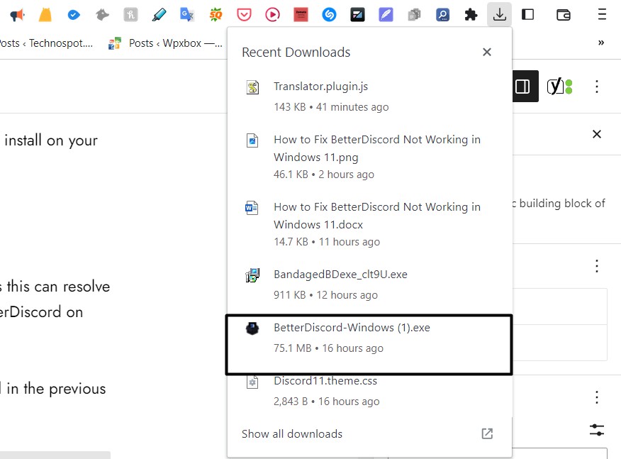 5.Μόλις ολοκληρωθεί, κατεβάστε το τελευταίο αρχείο betterdiscord-windows.exe απόεδώκαι εγκαταστήστε το.