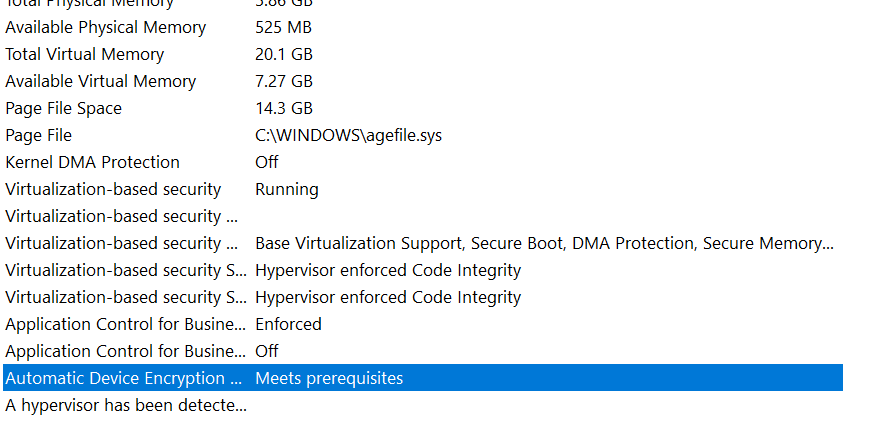 2.ΣεΠληροφορίες συστήματος, αναζητήστε τοΥποστήριξη κρυπτογράφησης συσκευώνστοιχείο στην αριστερή πλευρά.