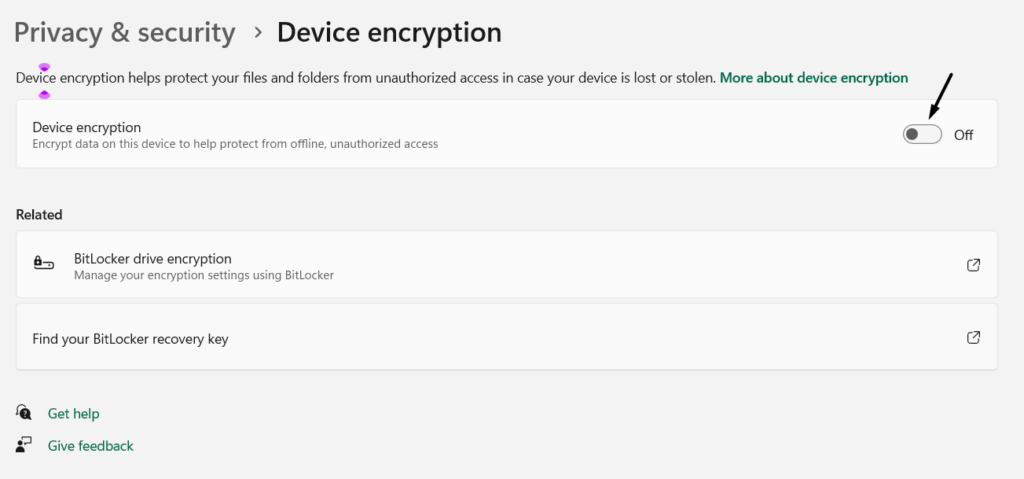 Εάν ο υπολογιστής των Windows 11 δεν υποστηρίζει κρυπτογράφηση δίσκου Bitlocker ή δεν είναι ακόμα ορατό, σας προτείνουμεΧρησιμοποιήστε τη λειτουργία κρυπτογράφησης συσκευήςΓια να προστατεύσετε τον υπολογιστή ή το φορητό υπολογιστή σας από τους μη εξουσιοδοτημένους χρήστες, τις επιθέσεις κακόβουλου λογισμικού και ακόμη και την οδήγηση εκτός σύνδεσης. Αναφέραμε τη διαδικασία για να ενεργοποιήσετε και να χρησιμοποιήσετε την κρυπτογράφηση της συσκευής Λειτουργία στα παράθυρα 11 παρακάτω: