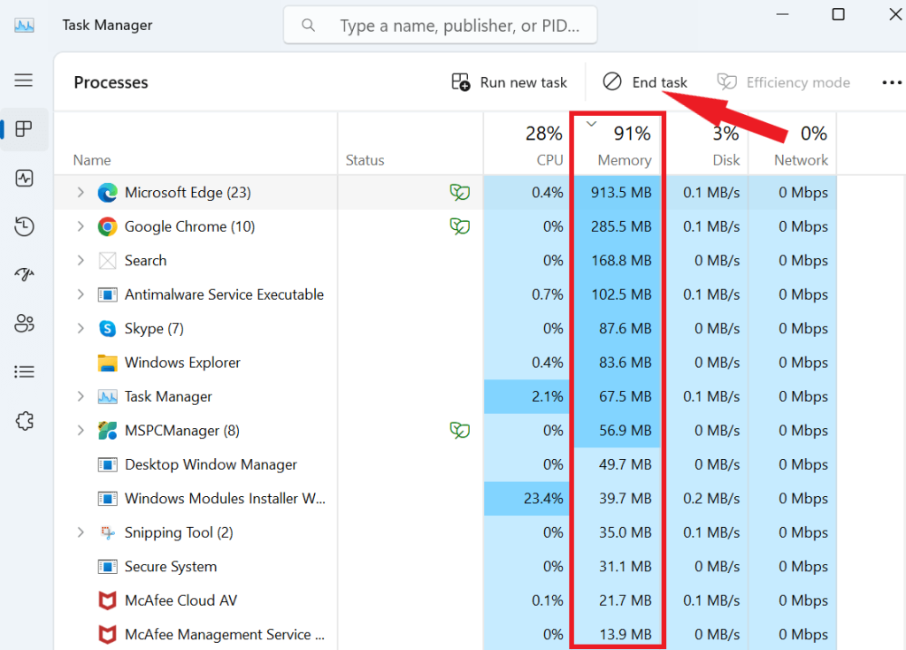 Η ανεπαρκής μνήμη είναι ένας κοινός ένοχος πίσω από τις συγκρούσεις του μπλέντερ. Η εκτέλεση μιας σειράς εφαρμογών ταυτόχρονα μπορεί να εξαντλήσει τη μνήμη RAM του υπολογιστή σας, οδηγώντας σε πιθανές συγκρούσεις στο Blender. Για να παρακάμψετε το ζήτημα της συντριβής του Blender κατά την εκκίνηση, αναλάβετε τον έλεγχο των προγραμμάτων-πεινασμένης μνήμης με αυτά τα βήματα: