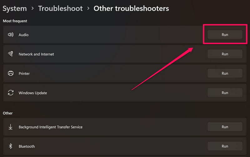 Τα Windows 11 διαθέτουν ένα σύνολο εύχρηστων εργαλείων αντιμετώπισης προβλημάτων που ενσωματώνονται στο σύστημα για να βοηθήσουν τους χρήστες να αντιμετωπίσουν εύκολα τα βασικά ζητήματα στους υπολογιστές και τους φορητούς υπολογιστές τους. Ως εκ τούτου, όταν βιώνετε τα ακουστικά Bluetooth που δεν λειτουργούν το ζήτημα στη συσκευή σας των Windows 11, μπορείτε να δοκιμάσετε να εκτελέσετε το αποκλειστικό ήχο προβλημάτων ήχου για να ανιχνεύσετε τυχόν λανθασμένες ρυθμίσεις ήχου που ενδέχεται να εμποδίσουν το αξεσουάρ ήχου σας σε δυσλειτουργία.