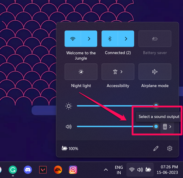 Σε αυτή την περίπτωση, θα πρέπει να επιλέξετε με μη αυτόματο τρόπο τα ακουστικά Bluetooth για να εξάγετε ήχο στη συσκευή σας Windows 11 μέσω του κέντρου δράσης. Ακολουθήστε τα βήματα παρακάτω για να επιλέξετε με μη αυτόματο τρόπο τα ακουστικά Bluetooth για ήχο στα Windows 11: