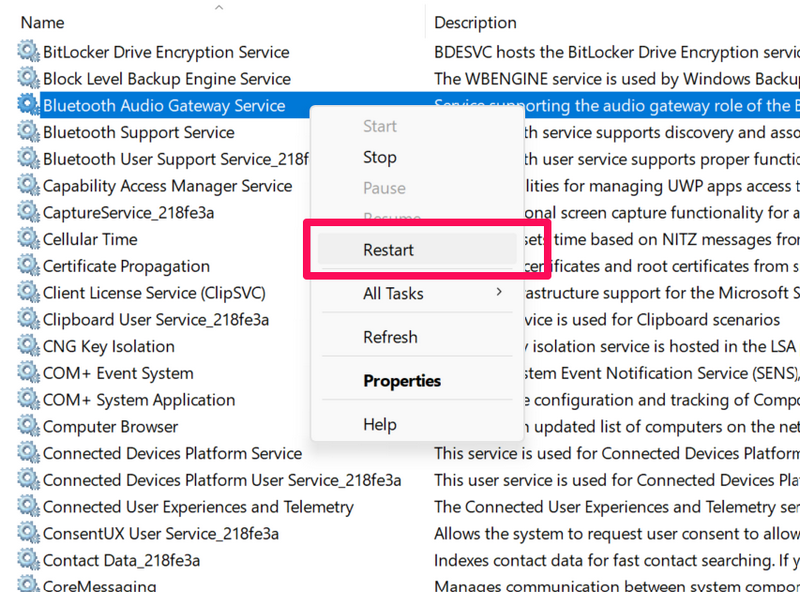 15. Επανεκκινήστε τις υπηρεσίες Bluetooth στα Windows 11