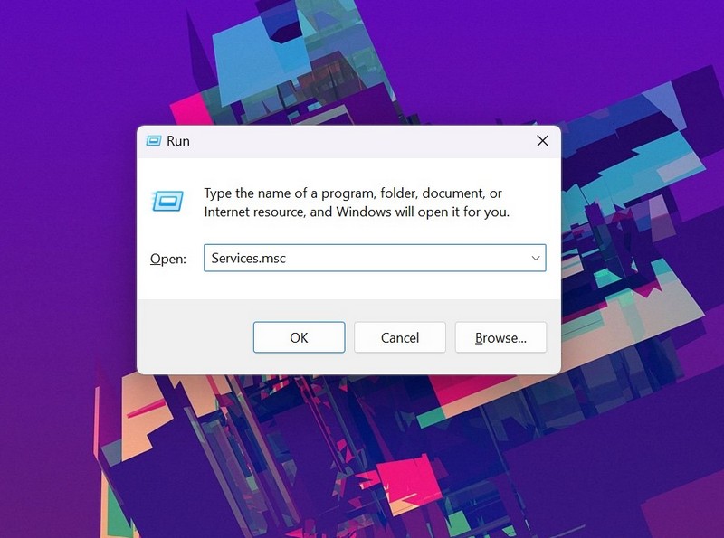 2.ΠληκτρολογώServices.mscΣτο πεδίο κειμένου και πατήστε Enter.