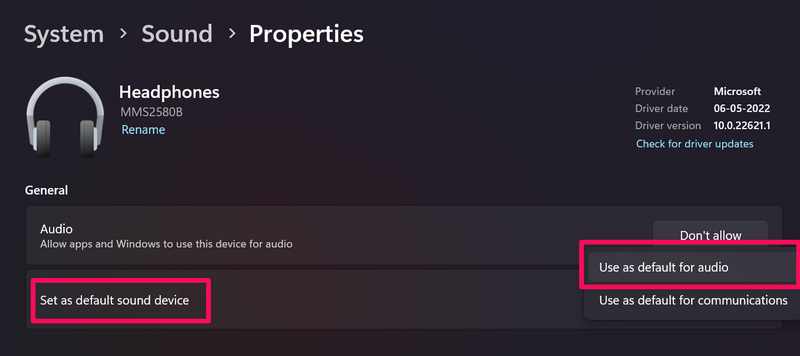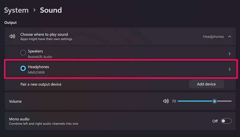 Ένα άλλο πράγμα που πρέπει να ελέγξετε πότε θα αντιμετωπίσετε τα ακουστικά Bluetooth που δεν λειτουργούν στο ζήτημα των Windows 11 στη συσκευή σας είναι αν τα ακουστικά έχουν επιλεγεί για να εξάγουν ήχο ή όχι. Πολλές φορές, όταν συνδέετε μια νέα συσκευή ήχου στον υπολογιστή ή το φορητό υπολογιστή Windows 11, δεν επιλέγει τα ακουστικά για να εξάγετε τον ήχο αυτόματα.