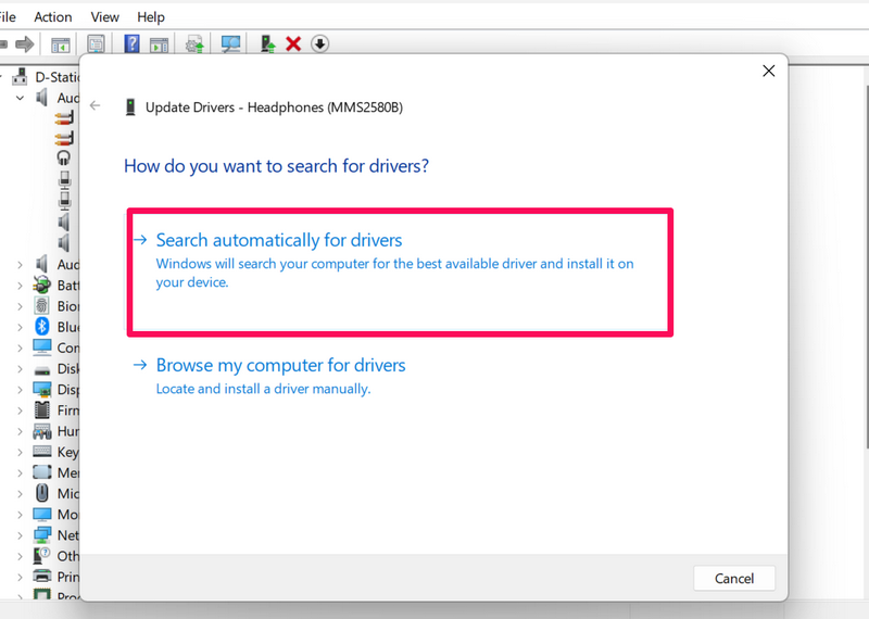 4.Επιλέξτε τοΑναζήτηση αυτόματα για τους οδηγούςΕπιλογή στην ακόλουθη προτροπή.