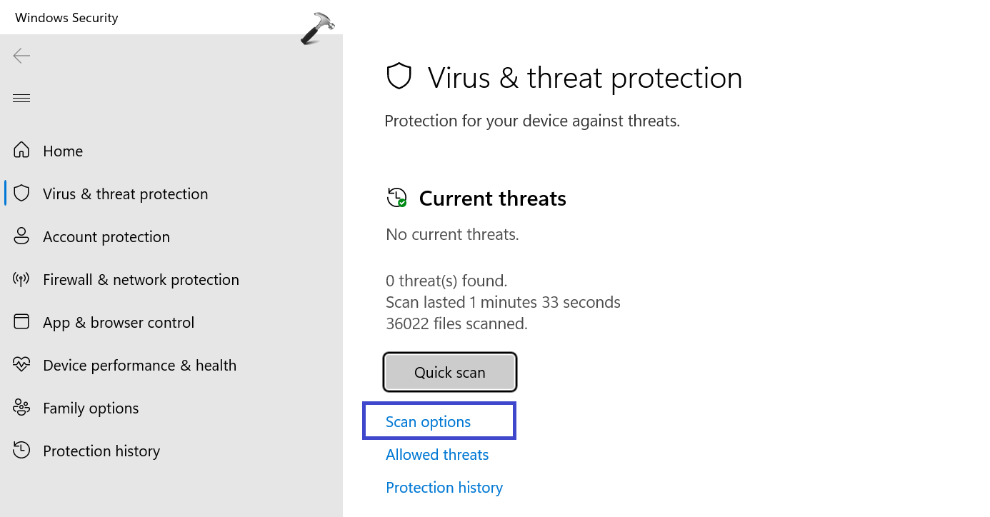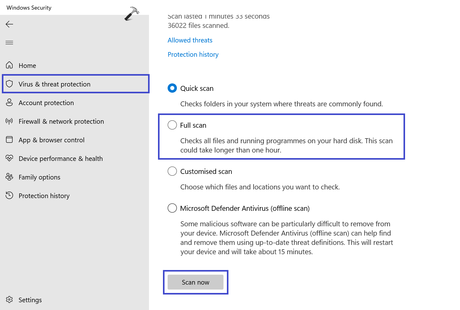 Διορθώστε 6: Εκτέλεση σάρωσης κακόβουλου λογισμικού