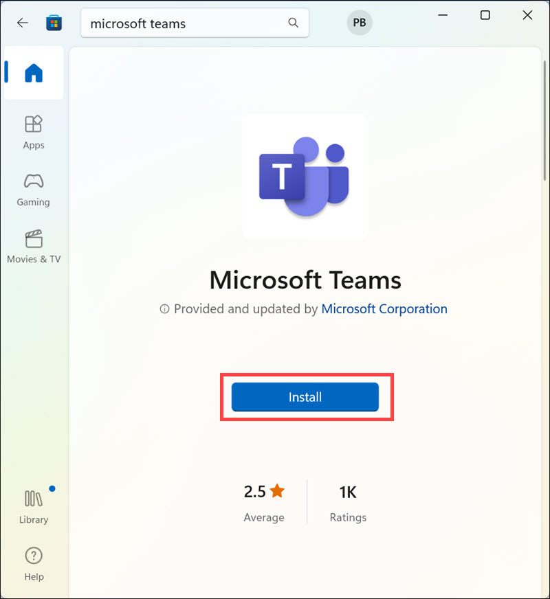 3.Αναζητήστε ομάδες της Microsoft, κάντε κλικ στις τρεις κουκκίδες και επιλέξτεΑπεγκαθιστώ.