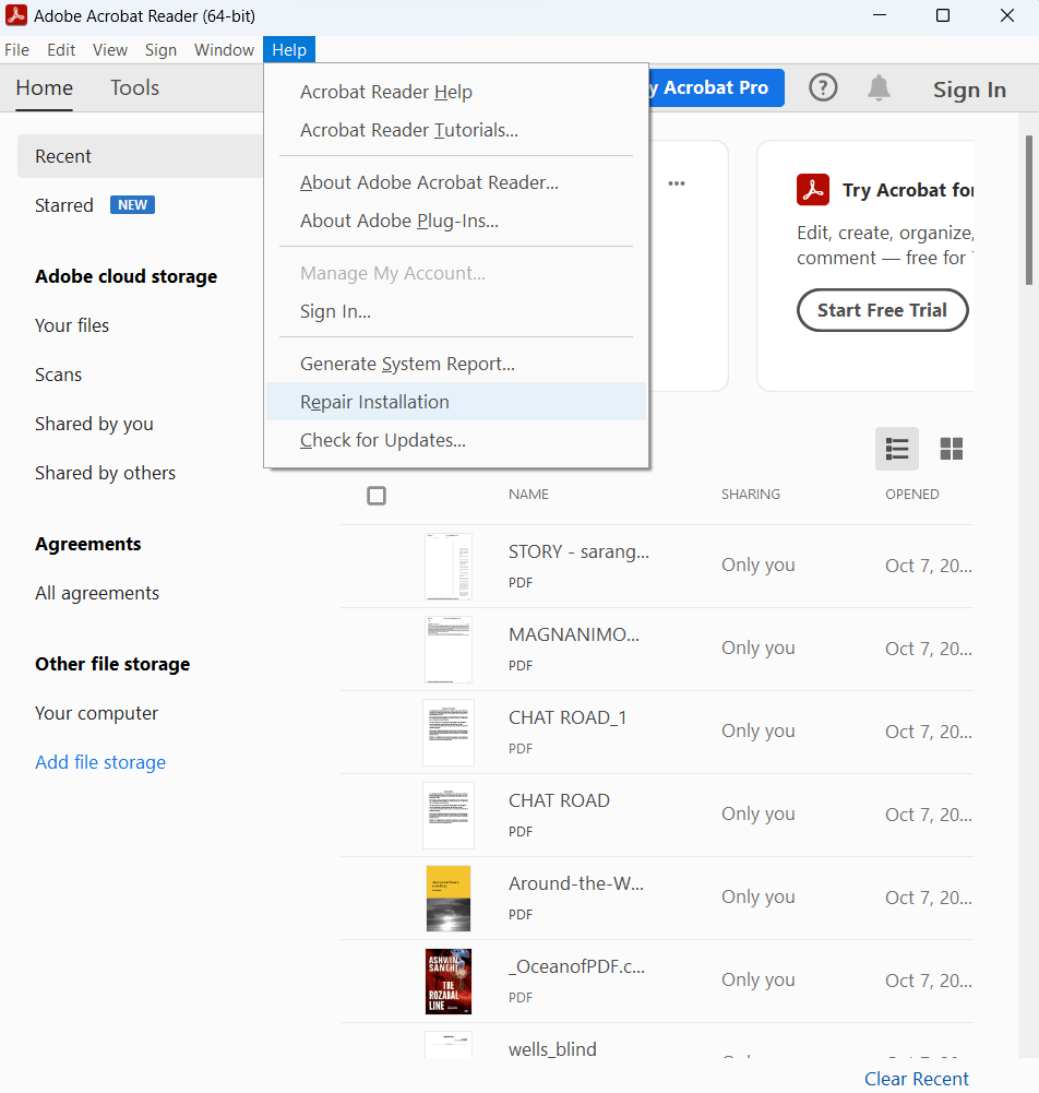 Δεδομένου ότι μιλάμε για την επισκευή PDFs, πώς να καθορίσουμε τα προβλήματα με τον ίδιο τον αναγνώστη Adobe Acrobat (αν υπάρχουν); Για αυτό -
