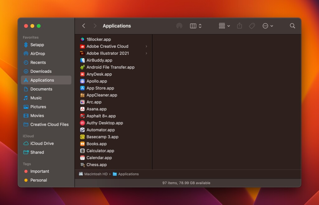2.Πηγαίνετε στοΑιτήσειςΦάκελος από την πλαϊνή μπάρα. Εάν δεν το βρείτε, πατήστεCMD+Αλλαγή+σολ, πληκτρολογώ/Εφαρμογέςκαι χτύπημαΕισάγετε/επιστρέψετεκλειδί.