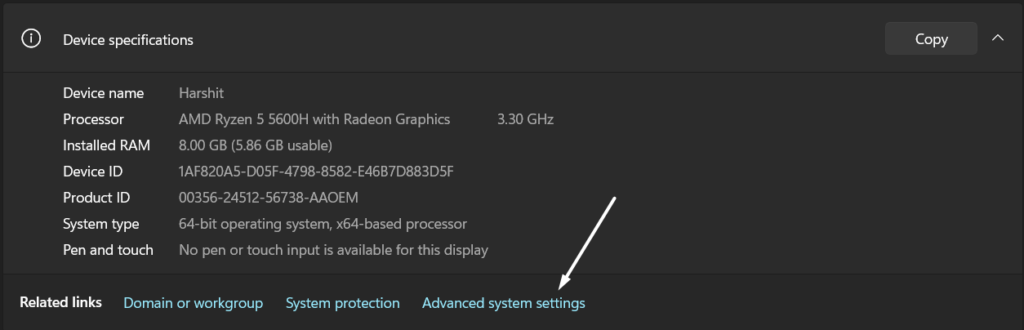 2.Κάντε κλικ στοΠροχωρημένες ρυθμίσεις συστήματοςεπιλογή στοΣύστημαπαράθυρο και στη συνέχεια μεταβείτε στοΠροχωρημένοςαυτί.