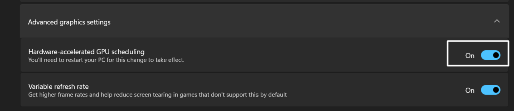 Εάν η διαδικασία διαχείρισης παραθύρων της επιφάνειας εργασίας χρησιμοποιεί πολλούς πόρους του συστήματός σας κατά τη διάρκεια της εκτέλεσης, δοκιμάστεΑναβάθμιση του προγράμματος οδήγησης GPU του PC των Windows 11. Εάν αυτό δεν διορθώσει το πρόβλημα, εξετάστε το ενδεχόμενο απενεργοποίησης του προγραμματισμού GPU (HAGS) του HAGS (HAGS).