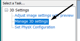 2.Κάντε κλικ στοΔιαχείριση 3D Ρυθμίσειςεπιλογή στην αριστερή πλαϊνή μπάρα και στη συνέχεια μετακινηθείτε στοΠαγκόσμιες ρυθμίσειςτμήμα.
