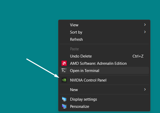2.ΕπιλέγωΠίνακας ελέγχου NVIDIAΑπό το μενού συμφραζομένων για να ανοίξετε τον πίνακα ελέγχου NVIDIA στο σύστημά σας.