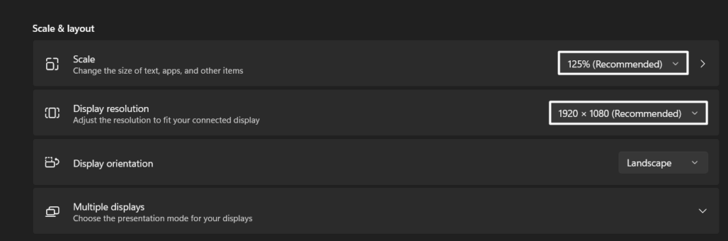Μερικοί χρήστες δήλωσαν ότι το λανθασμένο σύστημαΑνάλυση και κλιμάκωση εμφάνισηςΟι ρυθμίσεις θα μπορούσαν επίσης να προκαλέσουν αυτό το ζήτημα. Λαμβάνοντας αυτό υπόψη, σας προτείνουμε να βεβαιωθείτε ότι είστεΟι ρυθμίσεις ανάλυσης και κλιμάκωσης των Windows 11 PC είναι σωστές. Παρακάτω είναι τα βήματα για να ελέγξετε το ίδιο: