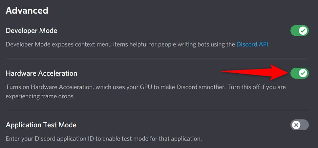 Η λειτουργία επιτάχυνσης υλικού της Discord χρησιμοποιεί τη GPU του υπολογιστή σας για να βελτιώσει την εμπειρία της εφαρμογής σας. Αυτή η λειτουργία δεν λειτουργεί πάντα καλά και θα πρέπει να το απενεργοποιήσετε για να δείτε αν εμποδίζει τη συντριβή της Discord.