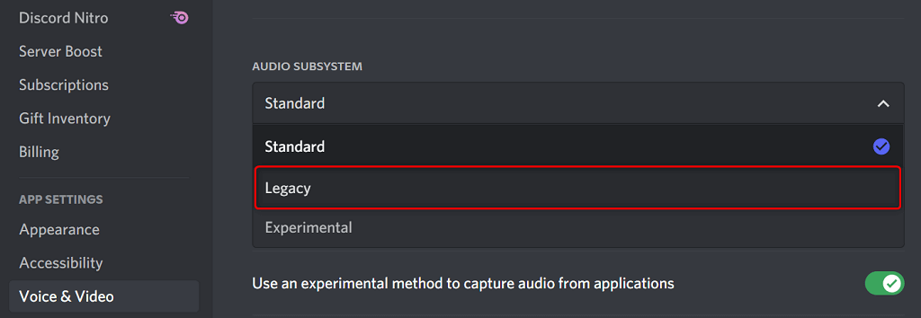 Το Discord θα μπορούσε να καταρρεύσει εάν ο εξοπλισμός των μέσων μαζικής ενημέρωσης δεν είναι συμβατός με την τυπική κατάσταση υποσυστήματος ήχου της εφαρμογής. Ευτυχώς, μπορείτε να επανέλθετε στη λειτουργία Legacy, οπότε ο εξοπλισμός σας λειτουργεί και δεν προκαλεί την κλείσιμο της Discord.