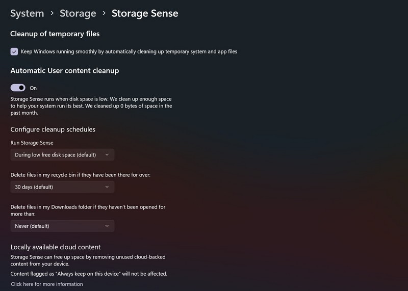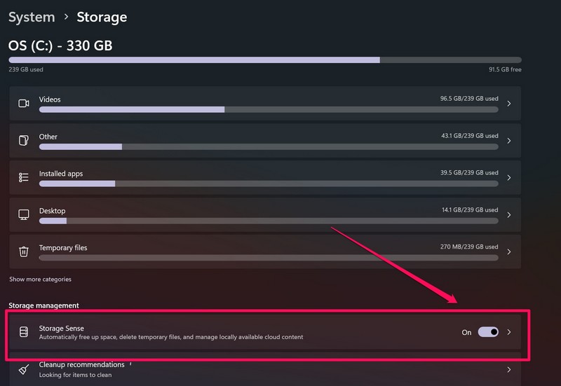 4. Χρησιμοποιήστε την αίσθηση αποθήκευσης των Windows στα Windows 11