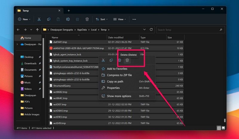 8. Διαγραφή προσωρινών αρχείων με μη αυτόματο τρόπο στα Windows 11