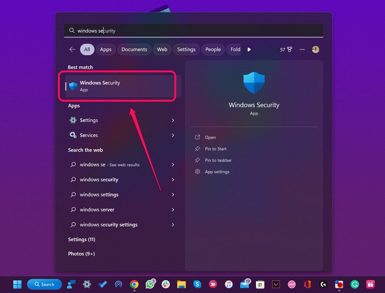 2.ΑναζήτησηΑσφάλεια των Windowsκαι κάντε κλικ στο πρόγραμμα στα αποτελέσματα αναζήτησης.