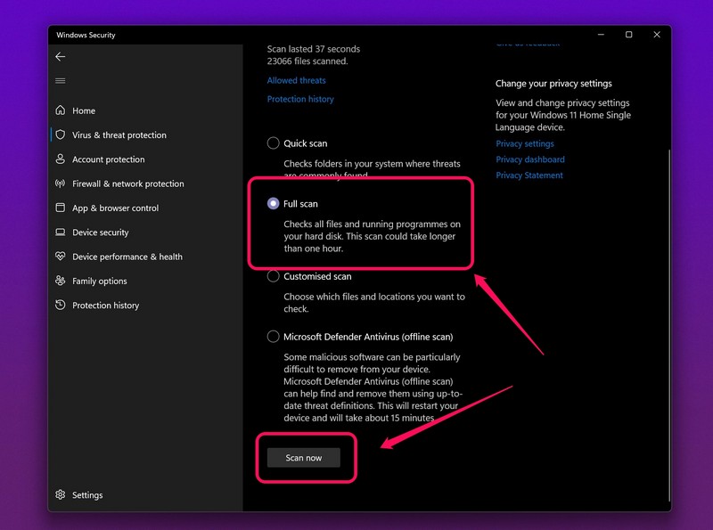 6. Σάρωση για ιούς/ κακόβουλο λογισμικό στα Windows 11