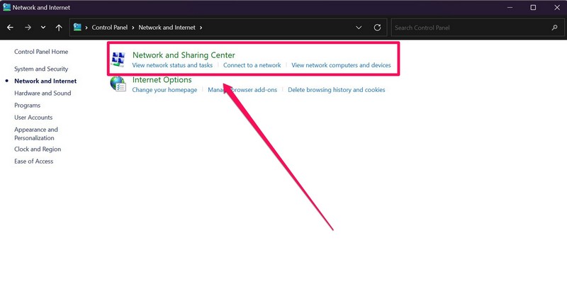 3.Κάντε κλικ στοΚέντρο δικτύου και κοινής χρήσηςεπιλογή.