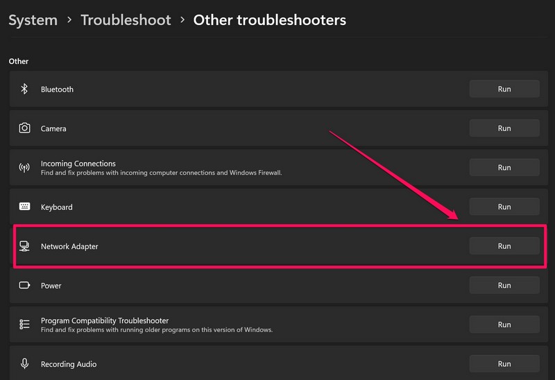 1. Εκτέλεση αντιμετώπισης προβλημάτων προσαρμογέα δικτύου στα Windows 11