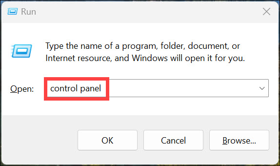 2.Πληκτρολογήστε "Πίνακα ελέγχου" στο πλαίσιο εντολών και πατήστε Enter.