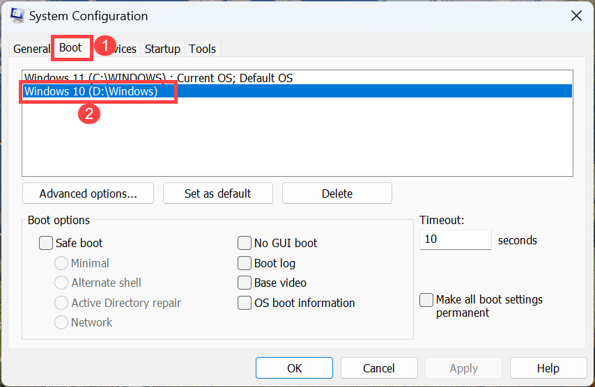 Είναι πιθανό ότι το πρόβλημα συμβαίνει λόγω ενός προβλήματος στο τρέχον προεπιλεγμένο λειτουργικό σύστημα. Έτσι, σε αυτή την περίπτωση, μπορείτε να δοκιμάσετε να αλλάξετε το προεπιλεγμένο λειτουργικό σύστημα και να ελέγξετε εάν το πρόβλημα είναι σταθερό. Ακολουθούν τα βήματα για να αλλάξετε το προεπιλεγμένο λειτουργικό εκκίνησης στα Windows 11: