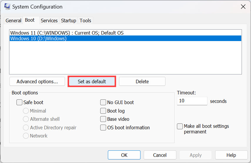 4. Αλλάξτε το προεπιλεγμένο λειτουργικό σύστημα