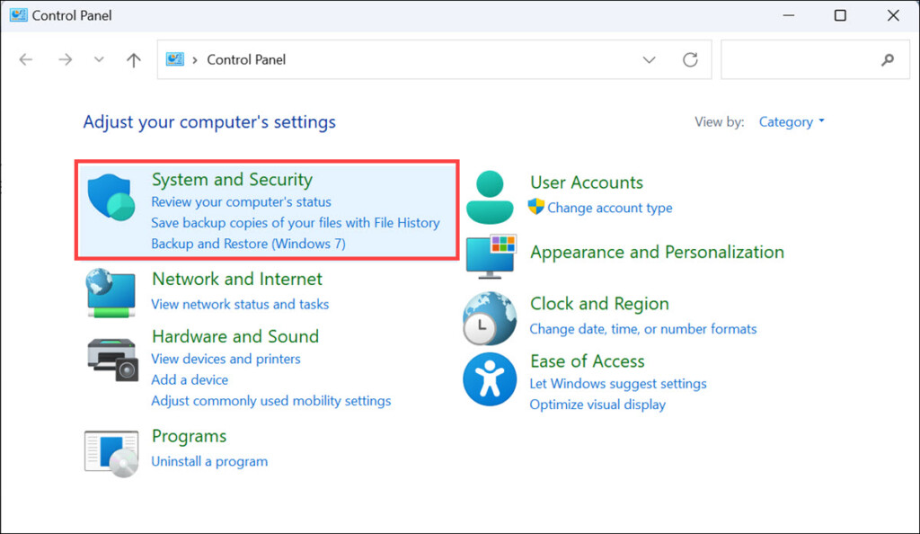 3.ΕπιλέγωΣύστημα και ασφάλειαΡυθμίσεις κάτω από "Προσαρμόστε τις ρυθμίσεις του υπολογιστή σας".